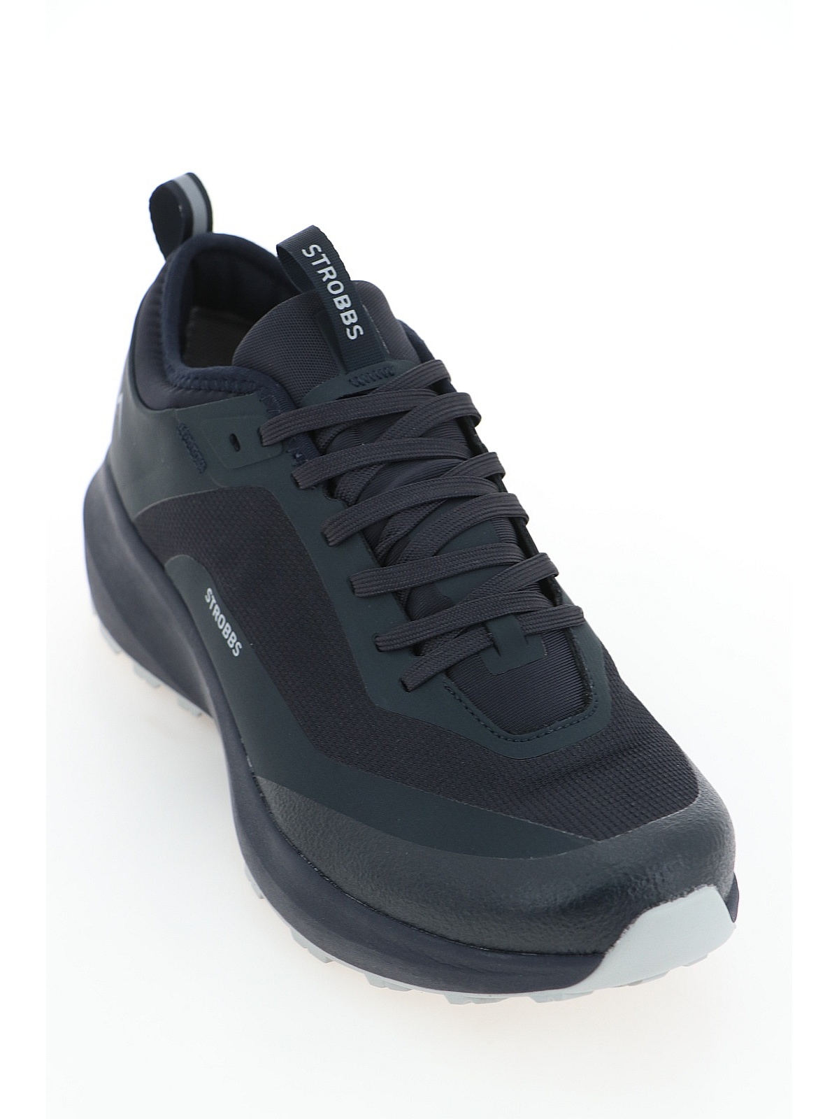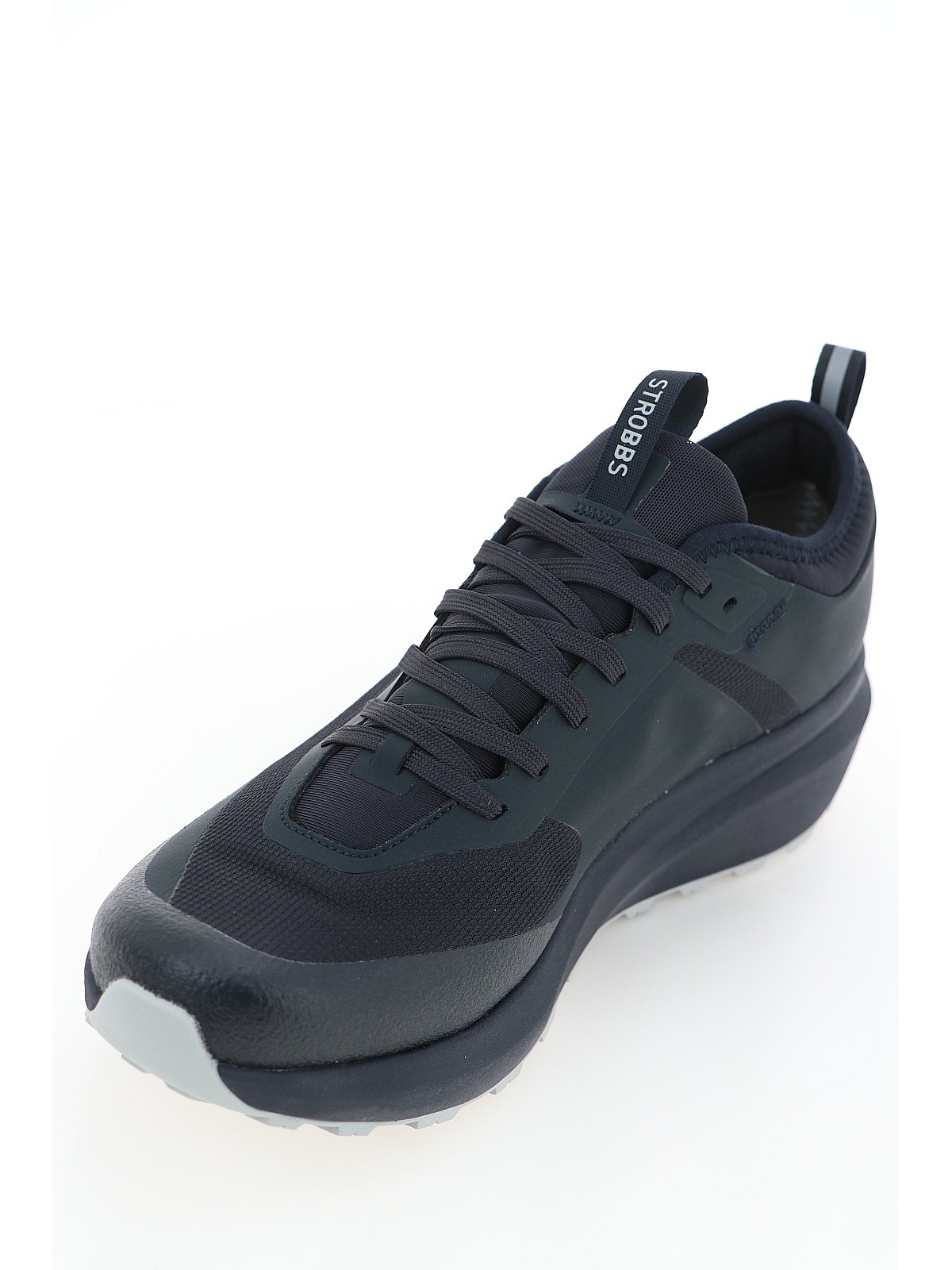 На язычке кроссовок Strobbs предусмотрен специальный кармашек, куда убирается пластиковый фиксатор и шнурки. Такая система гарантирует, что кроссовки не развяжутся, а шнурки не зацепятся за что-либо.